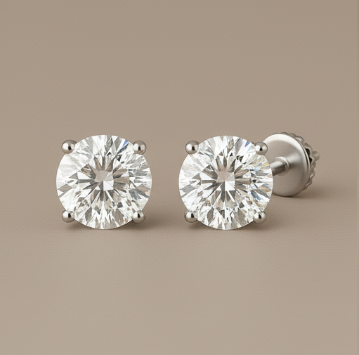 עגילי Stud (עגילים צמודים) עם יהלומים בצורת Round Brilliant (עגול מבריק) - העיצוב הקלאסי והנצחי ביותר בעולם התכשיטים.